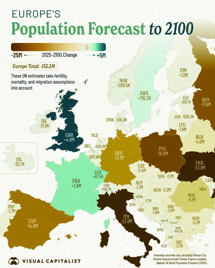 Во последните неколку децении стапката на наталитет во Европа падна под стапката на проста репродукција (што го одржува нивото на населението исто), а тоа само