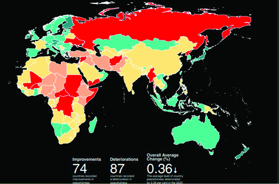 Македонија се најде на 51 место, со пад за четири позиции на Глобалниот индекс на мир за 2025 година, што секоја година го објавува Институтот