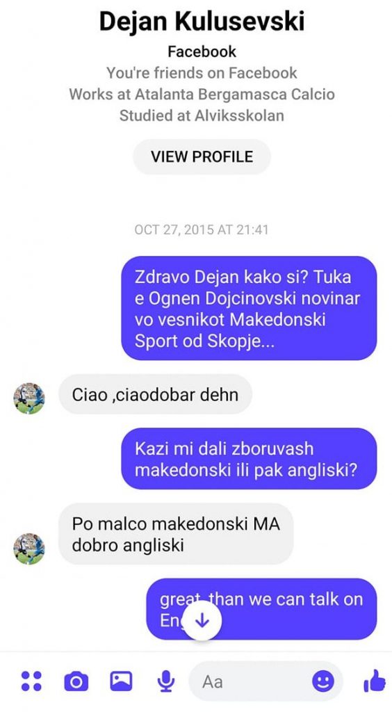 Сепак, напаѓачот на Тотенхем беше зачуден од овој пристап и побара комуникацијата да се води на англиски јазик: “На македонски? Не, не, многу малце… подобро на англиски…“