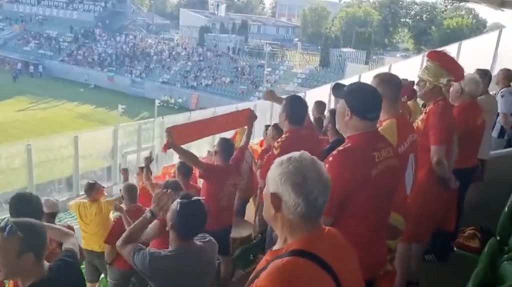 Наместо во Софија, Бугарија натпреварот со македонската фудбалска репрезентација го пресели во Разград северо-источна Бугарија. Македонците и таму пристигнаа, навиваа за своите репрезентативци, на трибините беа главни. Ечеа песни за Македонија, во еден момент грмеше силно “Спроти Пирин, Егеј син“. На почетокот на натпреварот на трибините грмеше “Никогаш северна само Македонија“ како силна порака на фалангата. Бугарите слушаа како грми нашето име Македонија! Големо браво за македонските навивачи кои иако беа околу стотина, сепак се слушаа многу повеќе од домашната публика