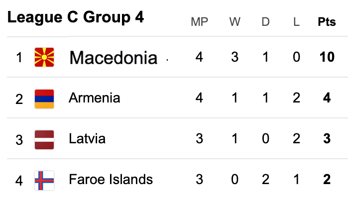 Македонија дојде на чекор од историски пласман во Лигата Б од Лигата на нации, но истовремено се избори и за историски успех во едни квалифиакции – да „заседне“ неприкосновено на првото место на табелата во нашата група. На две кола до крајот „рисовите“ имаат недостижна предност пред останатите селекции во групата.