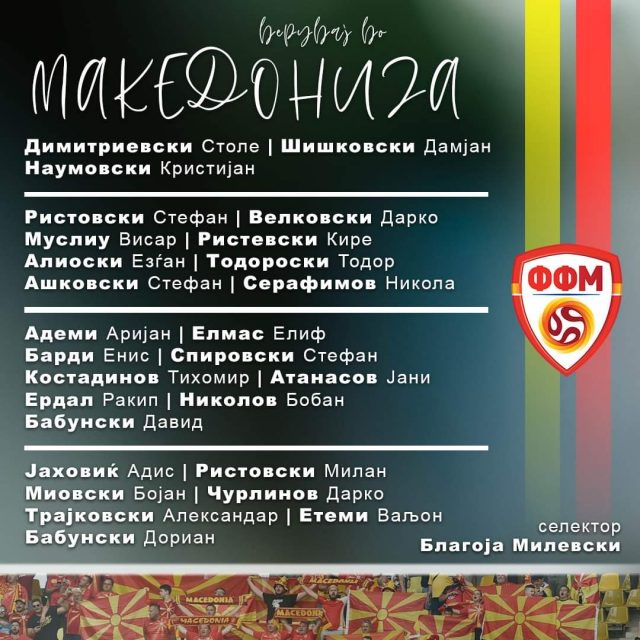 Селекторот на македонската репрезентација го соопшти тимот со кој оди ќе оди на победа против актуелниот европски фудбалски првак.