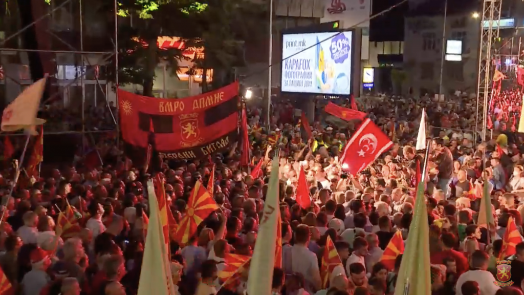 – Народот сака да се бори, сака да се избори за својата Македонија! Секој ден со СДСМ и ДУИ на власт сме поблиску до последниот ден на нашата татковина. Или ќе се бориме и ќе победиме, или ќе ја нема Македонија. Немаме избор! Ќе се бориме секој ден како во Собранието така и во општините, во институциите и на улиците. Сакам да предупредам дека не очекува исклучително тешка зима. Ако до крајот на ова лето нема договор за избори, ќе преминеме на целосна блокада на Собранието, на улиците, на институциите. И во таа борба ни треба секој поединец, ни треба општествена поддршка и сплотеност. Тешките времиња создаваат силни луѓе. Ви ветувам борба до последната капка пот, до последниот атом. Победуваме! – порача Мицкоски.