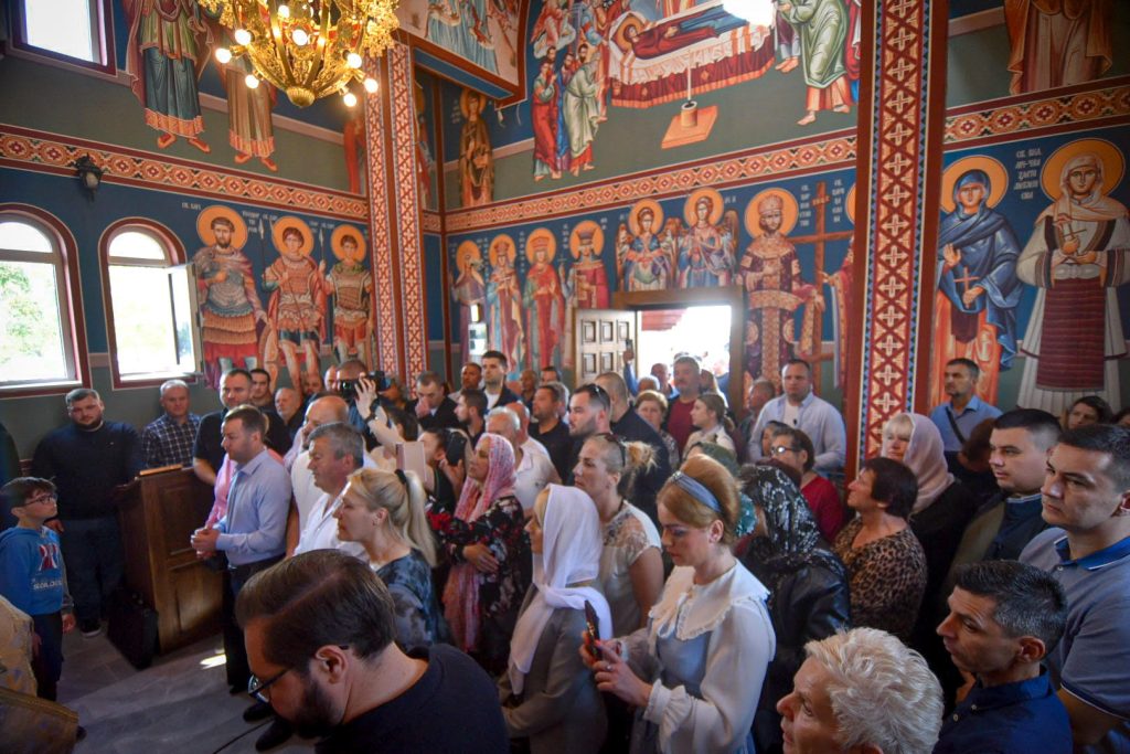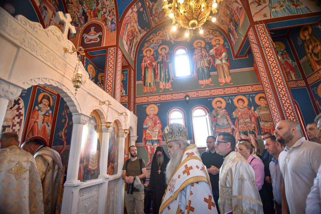 Чинот на осветувањето го изврши поглаварот на Македонската православна црква – Охридска архепископија Господин господин Стефан кој пред присутните верници истакна: „На ова место се случи исклучителна трагедија извршена од луѓе – нелуѓе, извршена од ѕверови во човечки кожа. Исто како 40-те Маченици, животите на тие петмина луѓе, христијани и Македонци, чеда на мајката црква беа одземени поради само една причина – поради нивната христијанска вера и нивната македонска крв. Преку овие пет христијански души се покажува дека сведоштвото на мачениците претставува семе за црквата. И ете се изгради овој мал, но убав дом божји и денес ја имаме радоста да го осветиме, истакна г.г. Стефан.