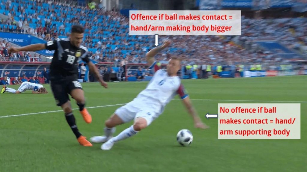 Џонсон објави фотографија од објаснувањето на ИФАБ, кога се смета играта со рака за пенал (неприродна положба), а кога не се смета за пенал (природна положба) при лизгачки старт.