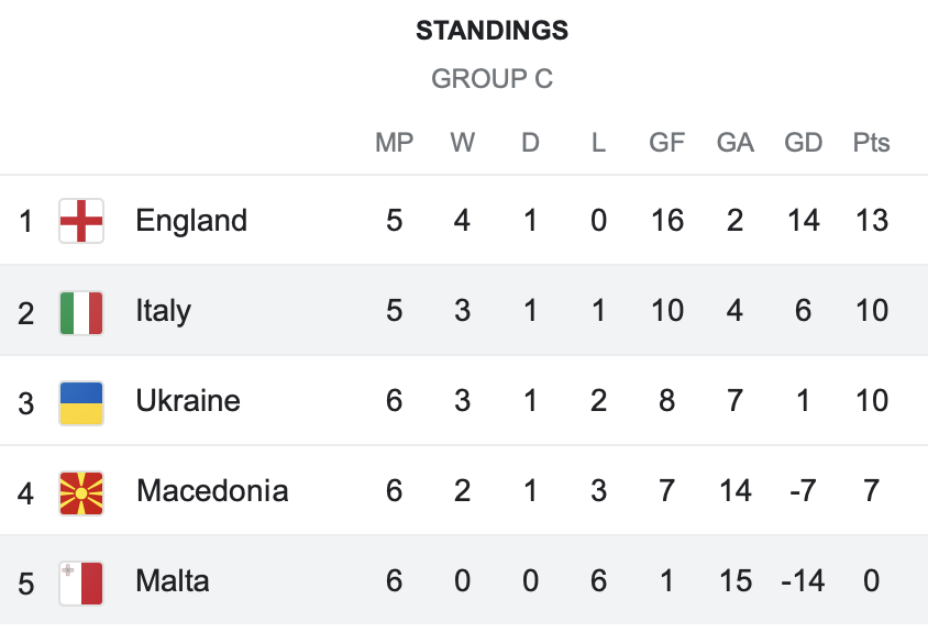 Головите на Георги Судаков во 30 минута и Олександр Каравајев во петтата минута од судиското продолжение придонесоа македонските фудбалери да го претрпат третиот пораз во квалификациите и да останат на четвртото место во квалификациската група со седум бодови, три помалку од Украина и Италија која на домашен терен славеше со 4:0 против Малта. Прво и второпласираните Англија и Италија, инаку, имаат меч помалку.