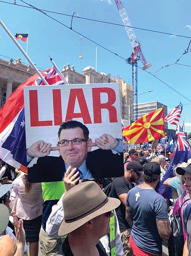 Снимките од воздух покажаа дека на антивладиниот протест присуствувале многу луѓе, додека организаторите тврдат дека на улиците на Мелбурн се собрале околу 450.000 граѓани.