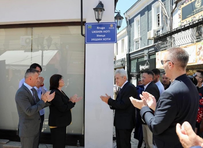 – Името на Укшин Хоти ќе го запаметат илјадници туристи од целиот свет минувајќи по оваа улица низ Старата чаршија, рече гордо градоначалникот.