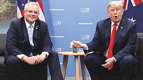 Американскиот претседател Доналд Трамп го започна својот престој во Осака со вечера со австралискиот премиер Скот Морисон зa време на самитот Г20. Двајцата водачи си разменија пофалби, а Трамп изјави дека би сакал да ја посети Австралија подоцна оваа година, за време на одржувањето на престижниот турнир во голф Куп на претседатели.
