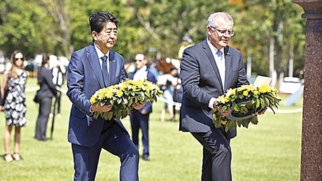 Јапонскиот премиер Шинѕо Абе положи венец на воен споменик во австралискиот град Дарвин и стана првиот јапонски лидер што го посетува градот кој бил бомбардиран од Јапонија во Втората светска војна.