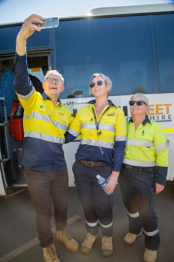 Прајминистерот Ентони Албанезе ги посети рудниците за железна руда на „Рио Тинто“ со министерката за ресурси Медлин Кинг во Карата, Западна Австралија. За време на