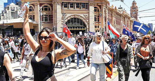 Групата „Милиони маршираат против задолжителната вакцинација“ организира неуморно протести во 30 градови и населени места ширум Австралија. Десетици илјади луѓе повторно се собраа во Сиднеј