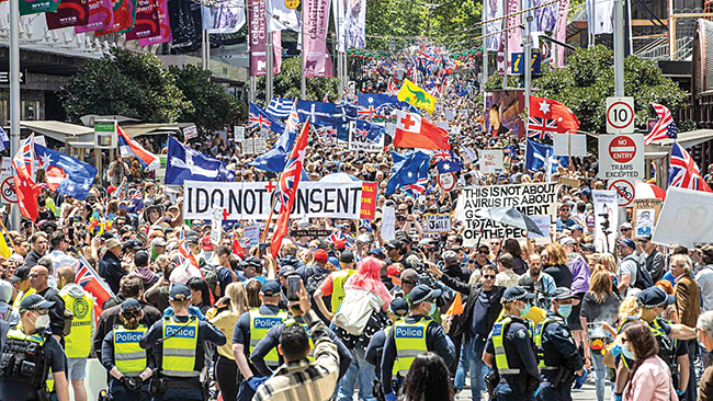 Викендот во Австралија го одбележуваат масовни протести против задолжителната вакцинација. Илјадници луѓе повторно се собраа во речиси сите поголеми градови на континентот, а епицентарот беше
