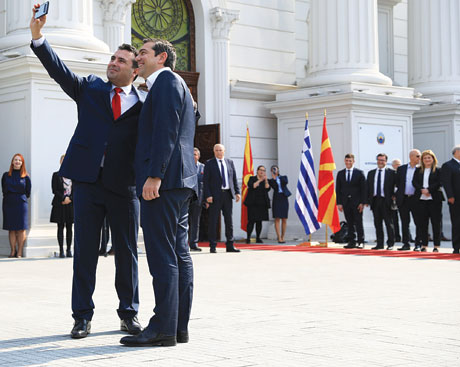 Со сите државни почести во Скопје беше пречекан грчкиот премиер Алексис Ципрас. Македонскиот премиер Зоран Заев ја искористи приликата за да направи неколку самосликања со милиот му гостин, да го натера да ги кренат победнички рацете, па групна фотографија со сите министри… (шоу што на гостинот многу не му се допадна).