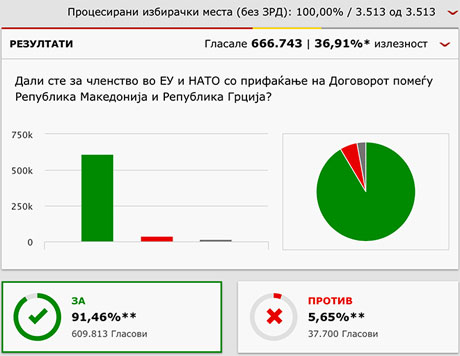 На референдумот на 30 септември гласале 666.743 граѓани или 36,91 % од вкупно запишаните во Избирачкиот список, соопшти ДИК по преброени 100 % од избирачките места.