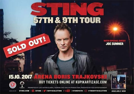 Само неколку часа од пуштањето во продажба, распродадени се билетите за концертот на Стинг во Скопје, соопшти организаторот „Авалон”.