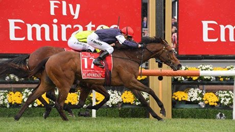Џокејот Керин МекЕвој го освои својот втор Мелбурн Куп со коњот Аламадин, кој во последните секунди изби пред Хартбејк Сити во епскиот дуел.