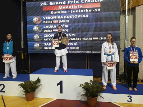 Европскиот шампион Вероника Костовска стигна со убедливи победи до златниот медал на силниот Меѓународен карате турнир Гран при Кроација во Самобор – Хрвтска.