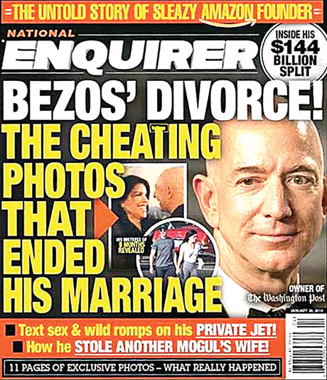Сопственикот на „Амазон”Џеф Безос (55) изјавил дека бил мета на „изнудување и уцена” на издавачот на таблоидот „Нешенел енквајер”, кој, како што тврди, му се заканувал дека ќе ги објави неговите приватни фотографии ако не престане да истражува како таблоидот дошол до приватните преписки со љубовницата.