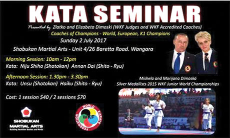 Златко и Елизабета Димоски на 2 јули ќе одржат карате семинар за кати во Сиднеј.