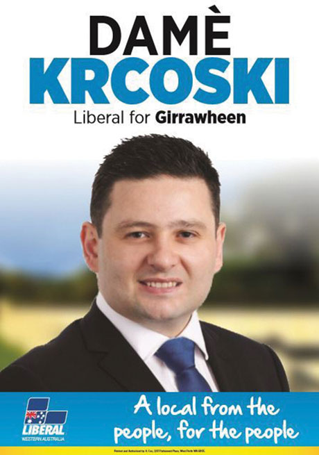 Даме Крцоски (36), кој живее и работи во Перт, е Македонец кој на претстојните парламентарни избори се кандидира за пратеник на Западна Австралија. Тој е член на Либералната партија, која и припаѓа на десницата, конзервативна демохристијанска партија.