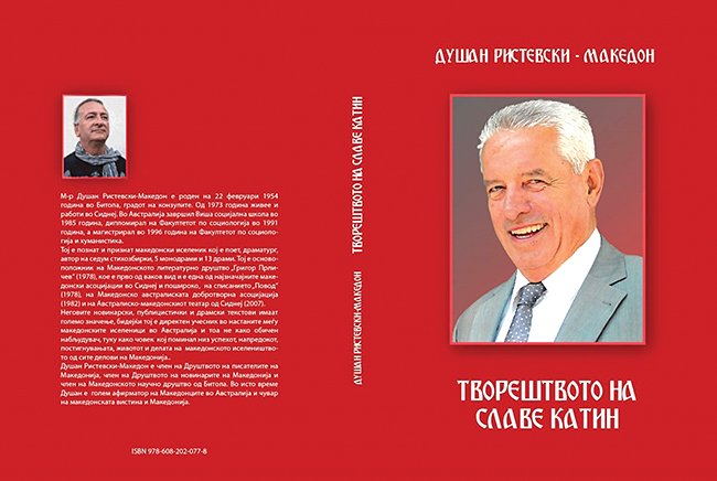 Во издание на книгоиздателството „Македонска искра“ од Скопје и Македонското литературно друштво „Григор Прличев“ од Сиднеј, Австралија излезе од печат книгата „Творештвото на Славе Катин“